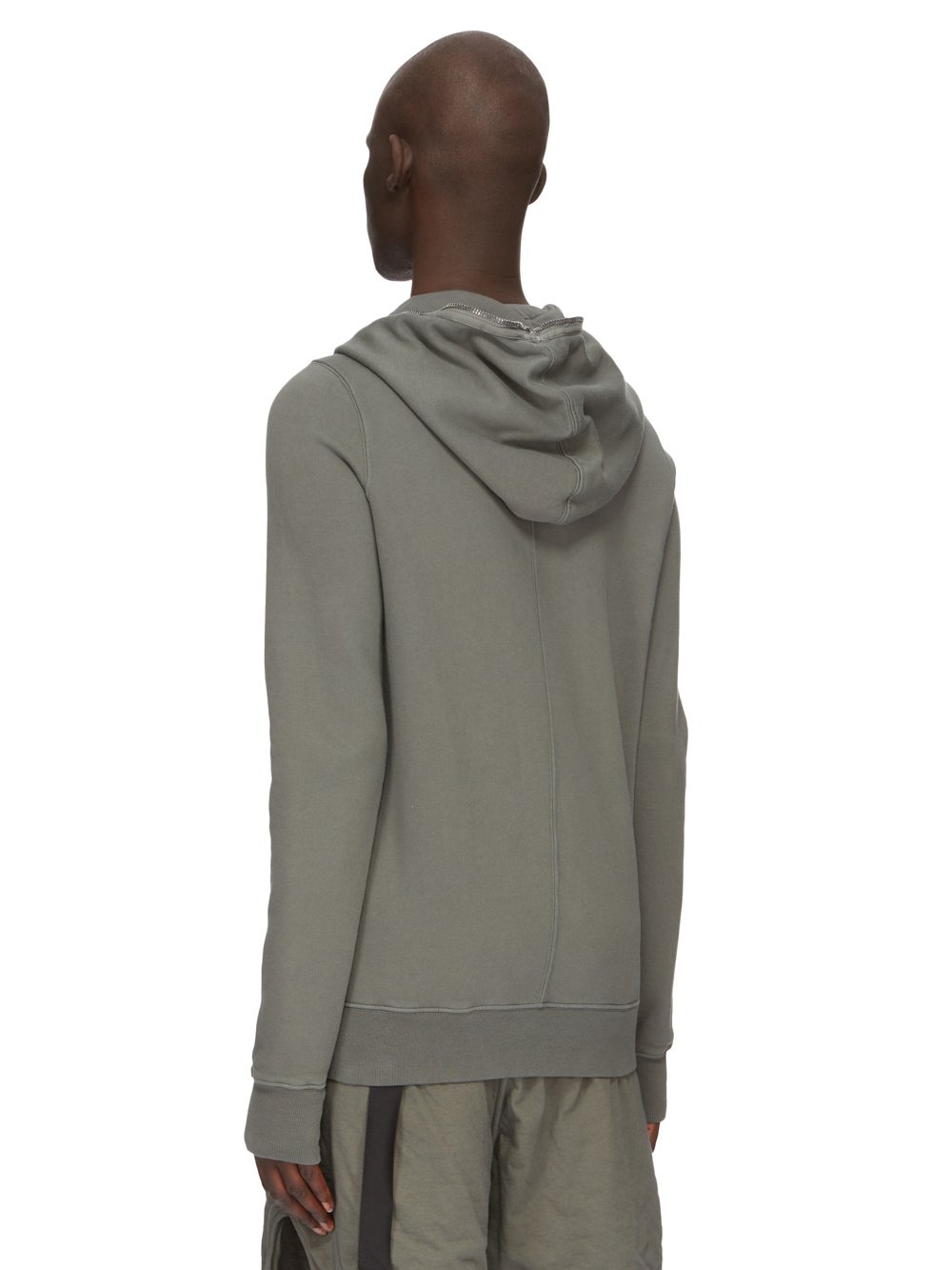 THIS GIMP HOODIE IS SLIGHTLY BELOW HIP LENGTH WITH LONG SLEEVES. IT HAS A FRONT ZIPPER CLOSURE WITH EXPOSED ZIPPER TAPE THAT RUNS FROM THE HEM ALL THE WAY UP THROUGH THE HOOD, ALLOWING IT TO BE ZIPPERED COMPLETELY CLOSED OVER THE FACE. IT HAS TWO SIDE FRONT POCKETS, RIBBED CUFFS AND WAISTBAND AND A SINGLE SEAM RUNNING DOWN THE CENTRE BACK SPINE.