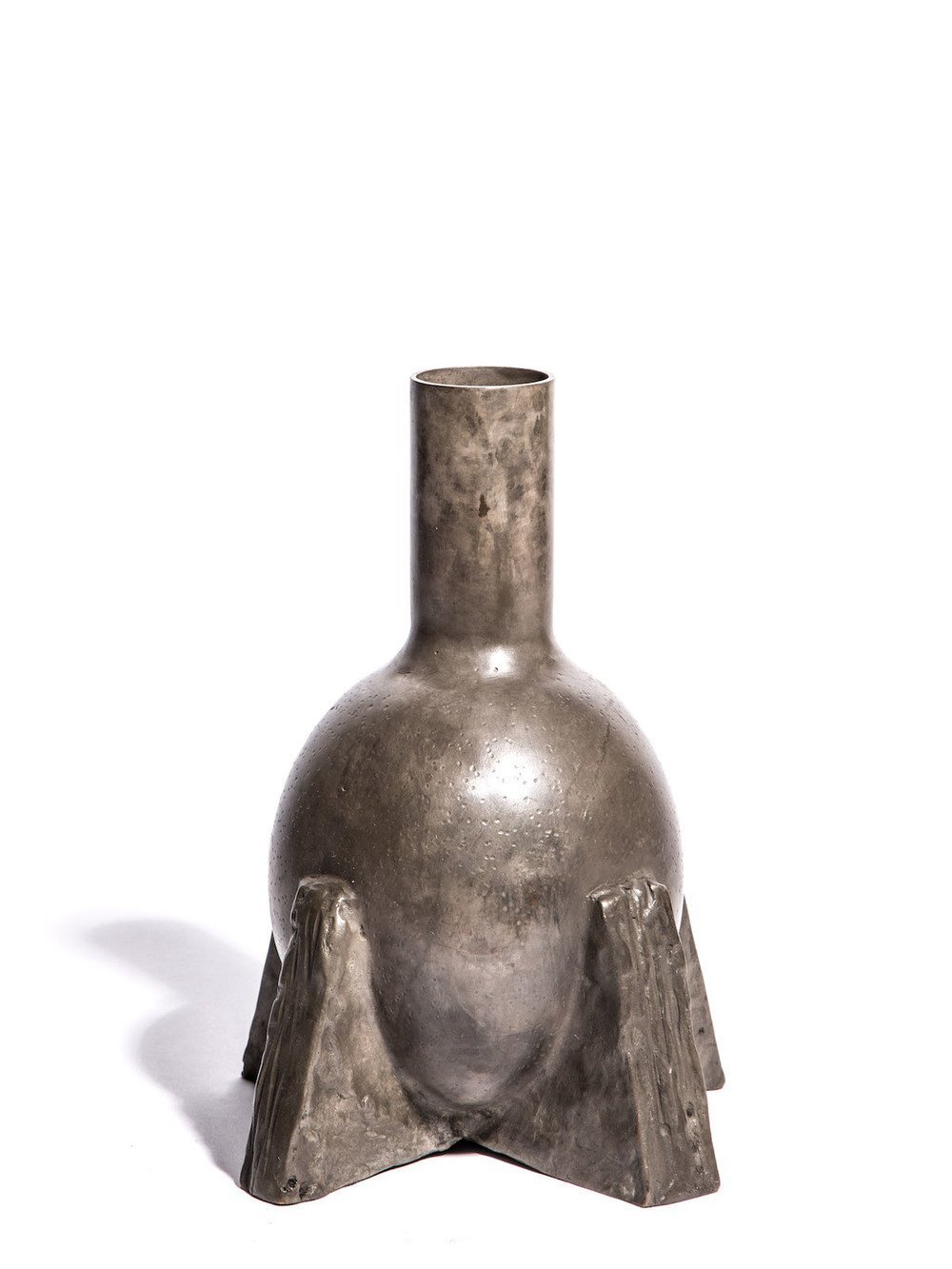 RICK OWENS DUCK NECK VASE IN BRONZE HAS AN OVAL SHAPE, FEATURES A SLIM AND SHORT NECK, FOUR LEGS AND SLIGHTLY IRREGULAR SURFACE.