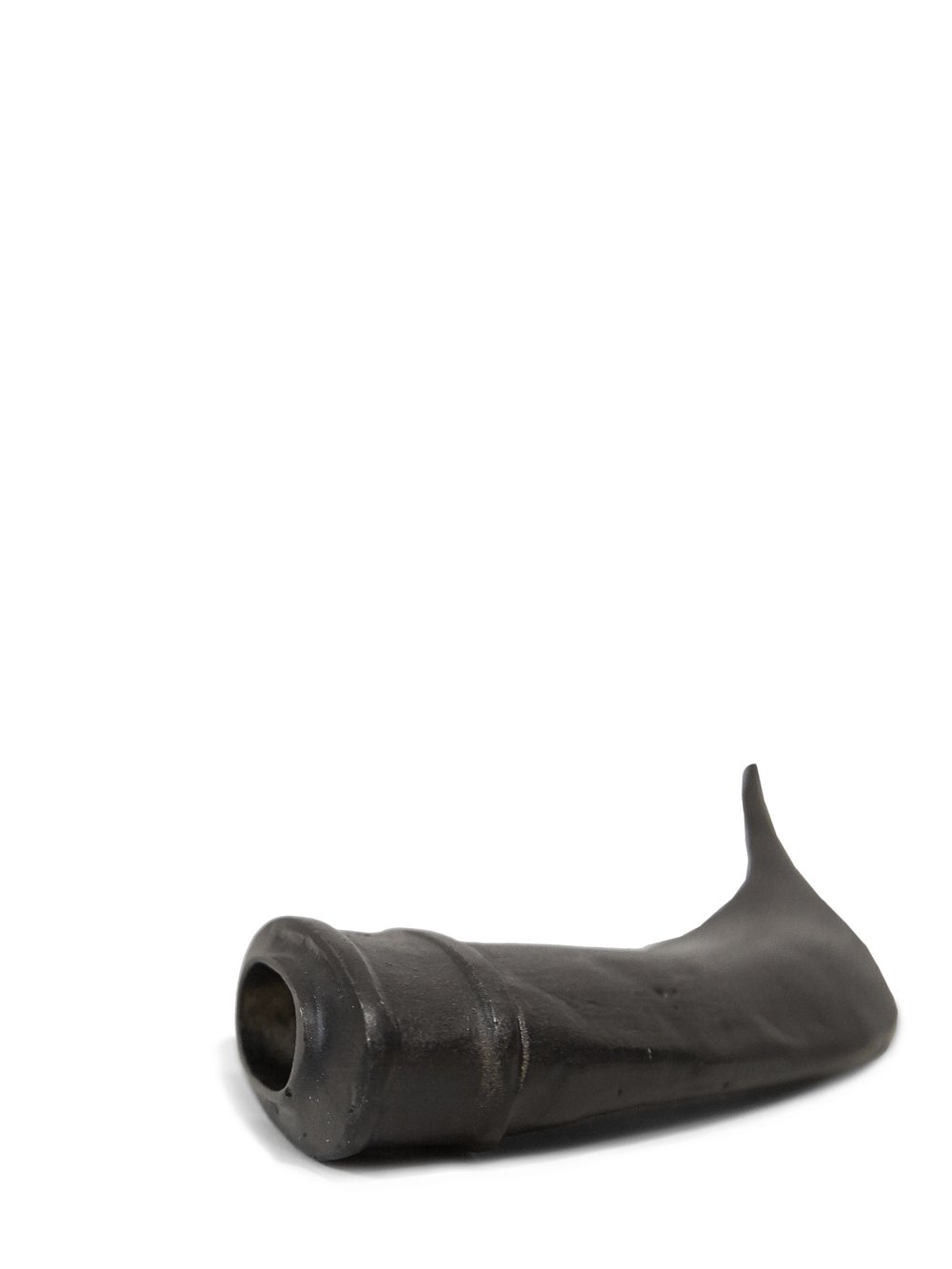 RICK OWENS LIGHTER IN BRONZE HAS A HORN SHAPE, AND FEATURES A SLOT ON THE TOP FOR INSERTING A REGULAR LIGHTER.