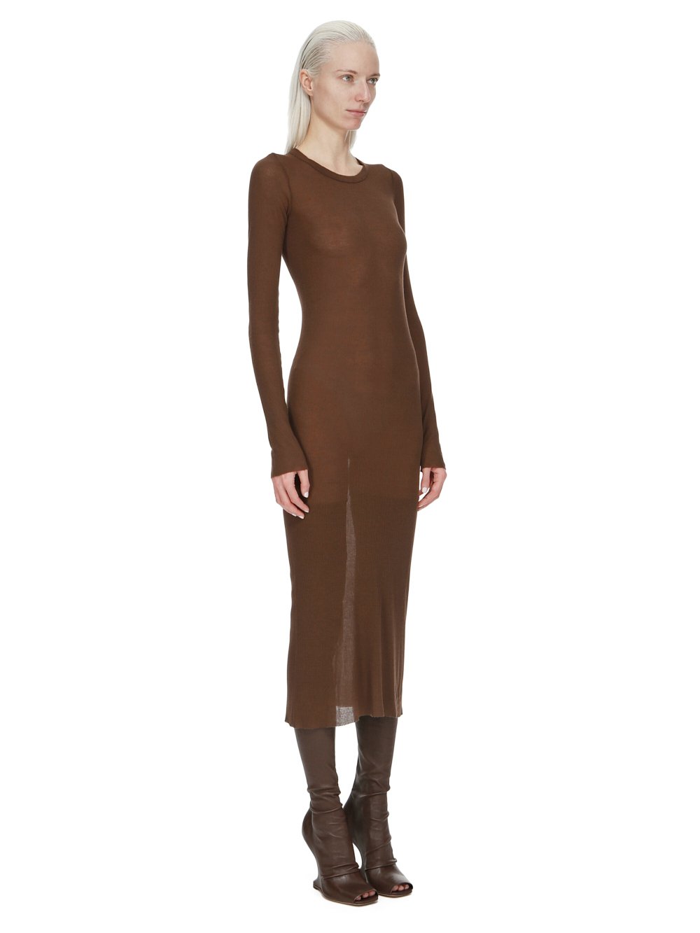 • RICK OWENS FW23 LUXOR RIB LS DRESS IN BROWN VISCOSE SILK RIB JERSEY