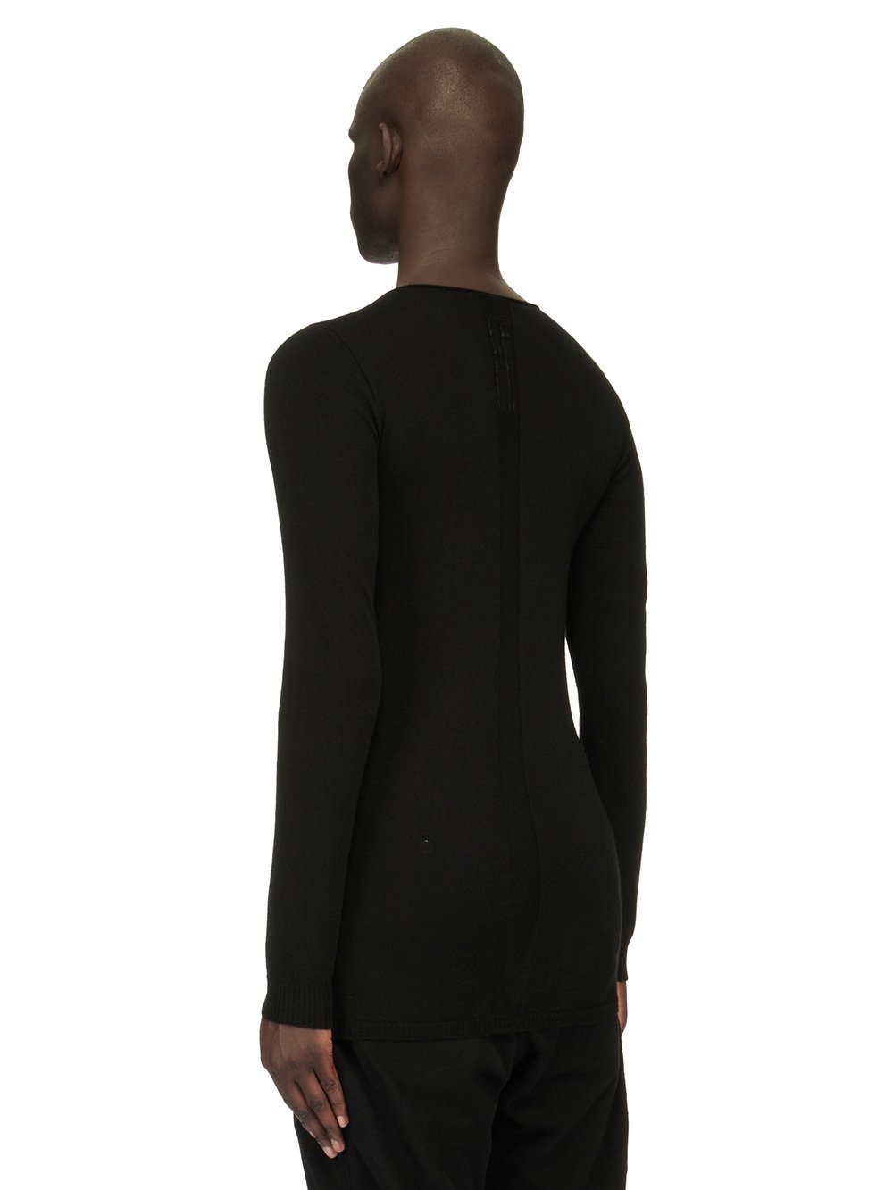 • RICK OWENS FW23 LUXOR ROUND NECK IN BLACK LIGHTWEIGHT RASATO KNIT