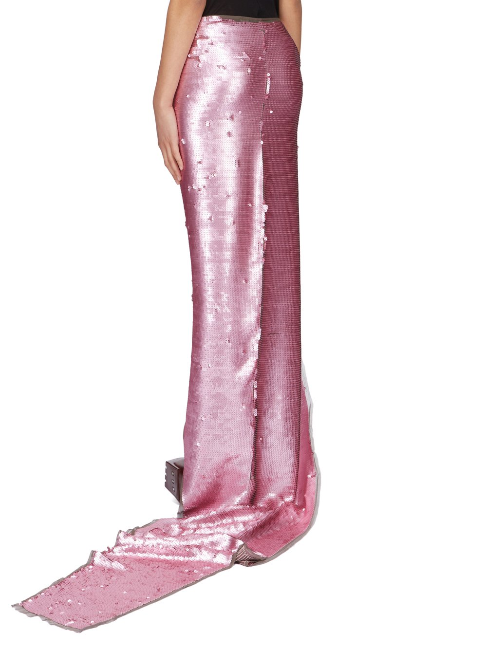 RICK OWENS FW23 LUXOR RUNWAY EDFU SKIRT RUNWAY LENGTH IN DUST AND PINK SEQUIN EMBROIDERED SILK CHIFFON